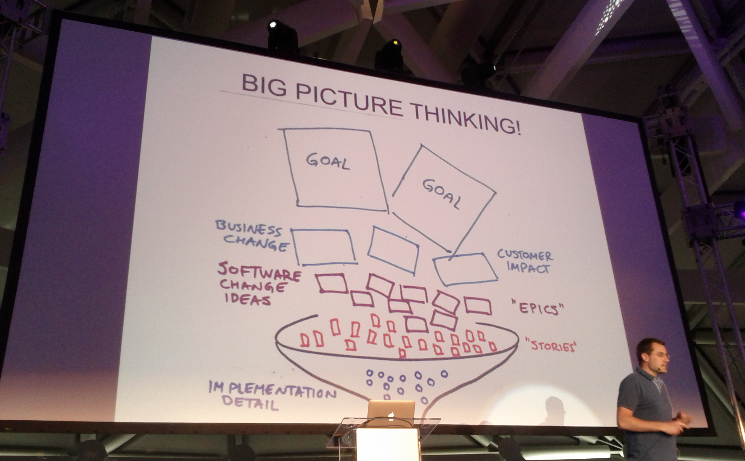 This presentation was not (only) about Impact Mapping, though, but more on how to write better User Stories. Gojko showed us how by spending 10 minutes more on writing user stories, they could be 10.000 times better :-)